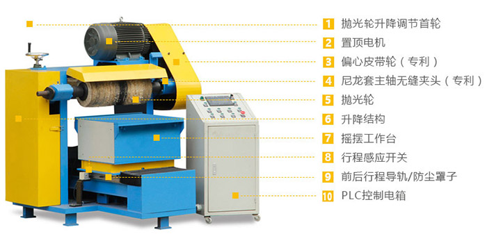 金铸机械主打的平面自动抛光机设备,可根据客户加工产品的的尺寸要求,将工作台尺寸定做成宽度600-1000mm.