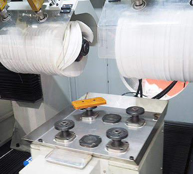 设备采用四轴CNC控制系统,X、Y、Z1、Z2轴伺服分别控制工作台纵横移动、磨头升降,实现X、Z1轴联动X、Z2轴联动从而做到对曲面产品的抛光,可以自动完成曲面产品从粗抛到精抛。抛光同时产品可进行正、反转,工作台往复摆动,抛光效果更均匀细致。抛光轮损耗可进行自动补偿。另配有:1、自动喷蜡系统 2、自动润滑系统 3、工件真空吸系统 4、抽尘接口